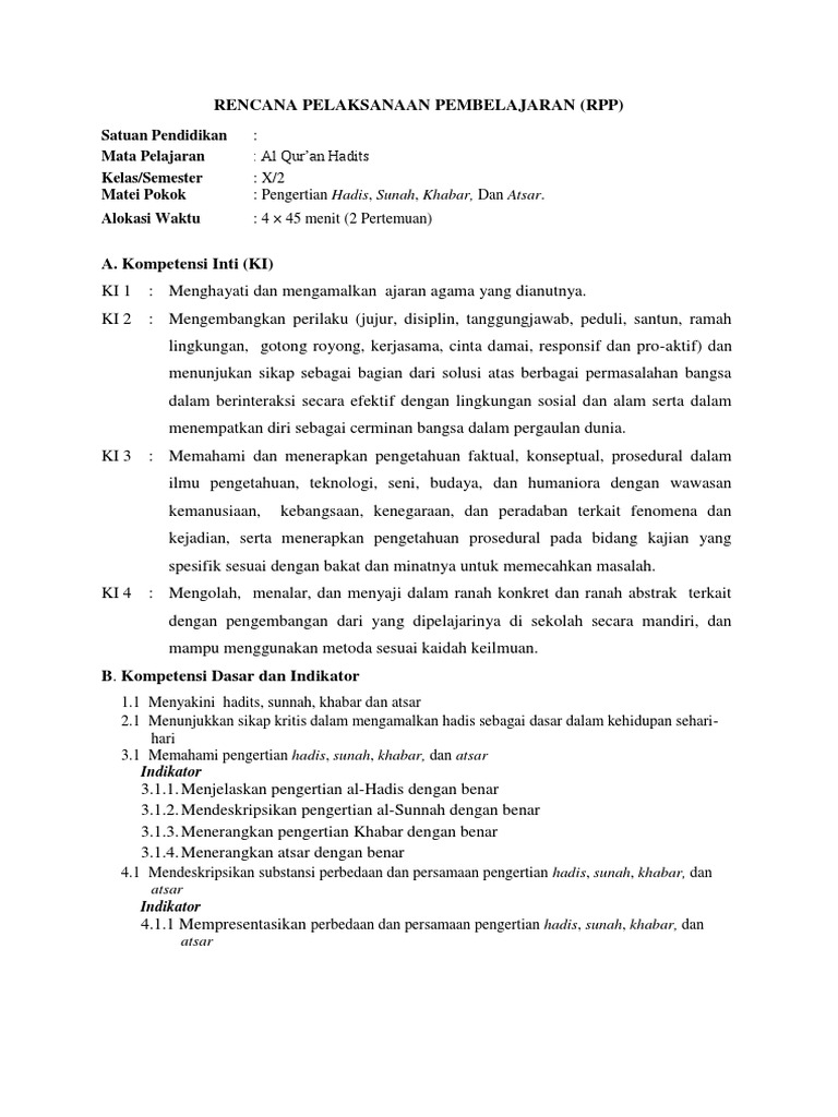 Contoh rpp quran hadits mts kelas 7 kurikulum.